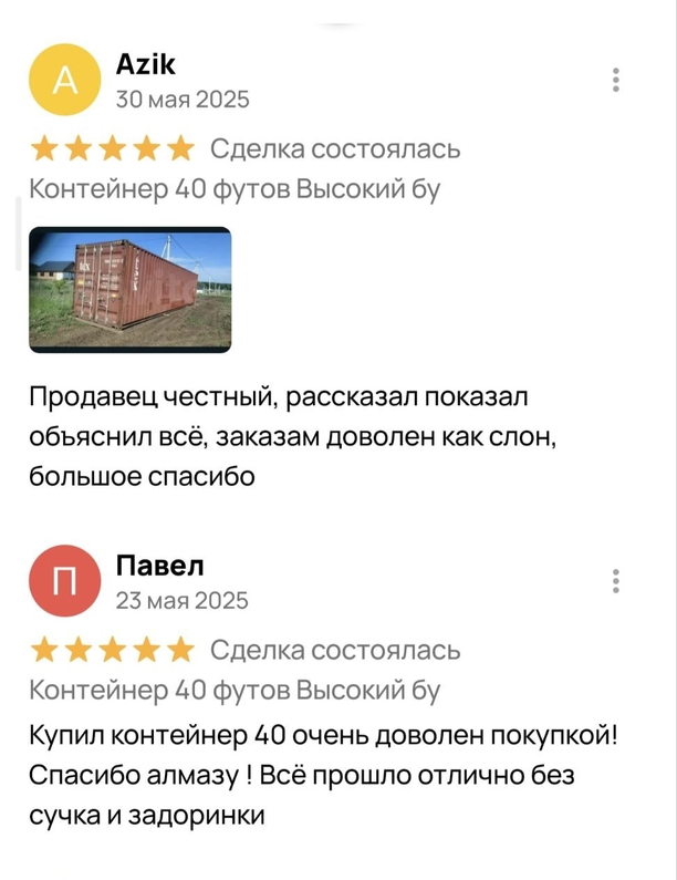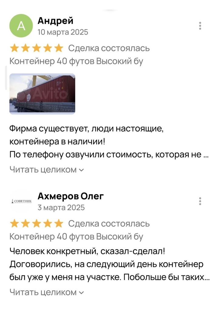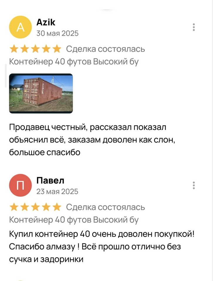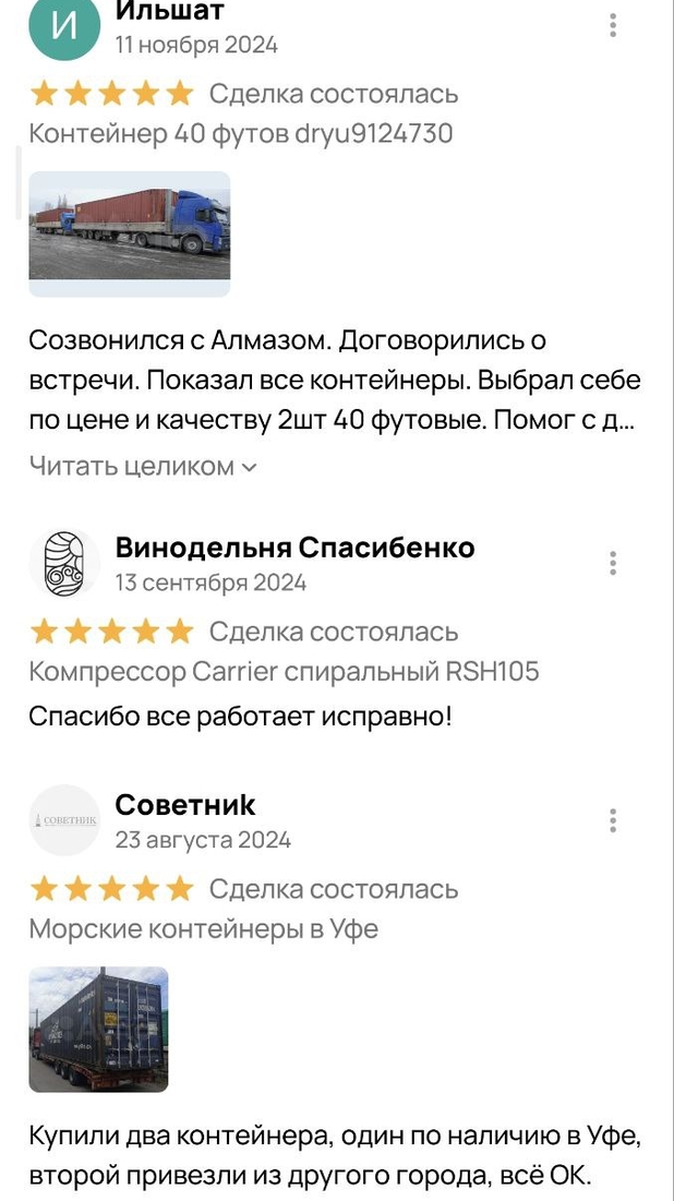 Да вы можете приехат к нам на площадку, встретим и покажем контейнера.